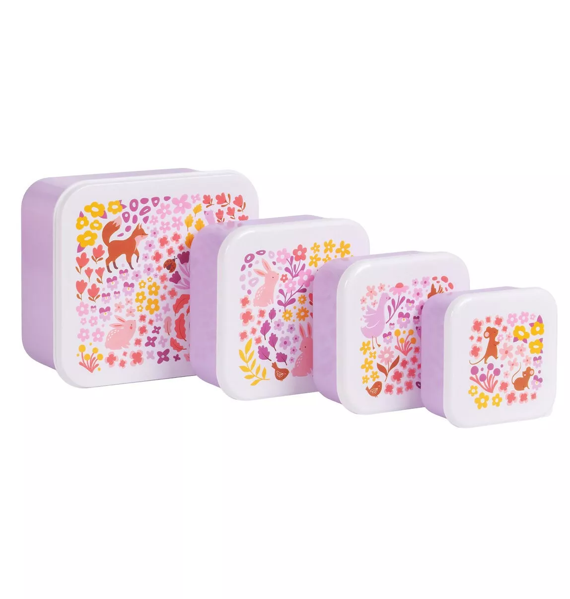Range tes encas préférés dans les boîtes de ce set complet lunch et snack box. Emporte facilement des fruits, des crudités, des biscuits, des bonbons et des sandwichs dans ces boîtes. Ces lovely lunch et snack box sont disponibles en set de quatre tailles différentes, et sont toutes décorées. Pratique pour l’école, dans la voiture ou pour une excursion. Le set lunch et snack box est fabriqué en polyéthylène. Le matériau utilisé ne convient pas au lave-vaisselle, ni au micro-ondes. Nous vous conseillons également de nettoyer toutes les pièces du set à l’eau chaude savonneuse avant utilisation.