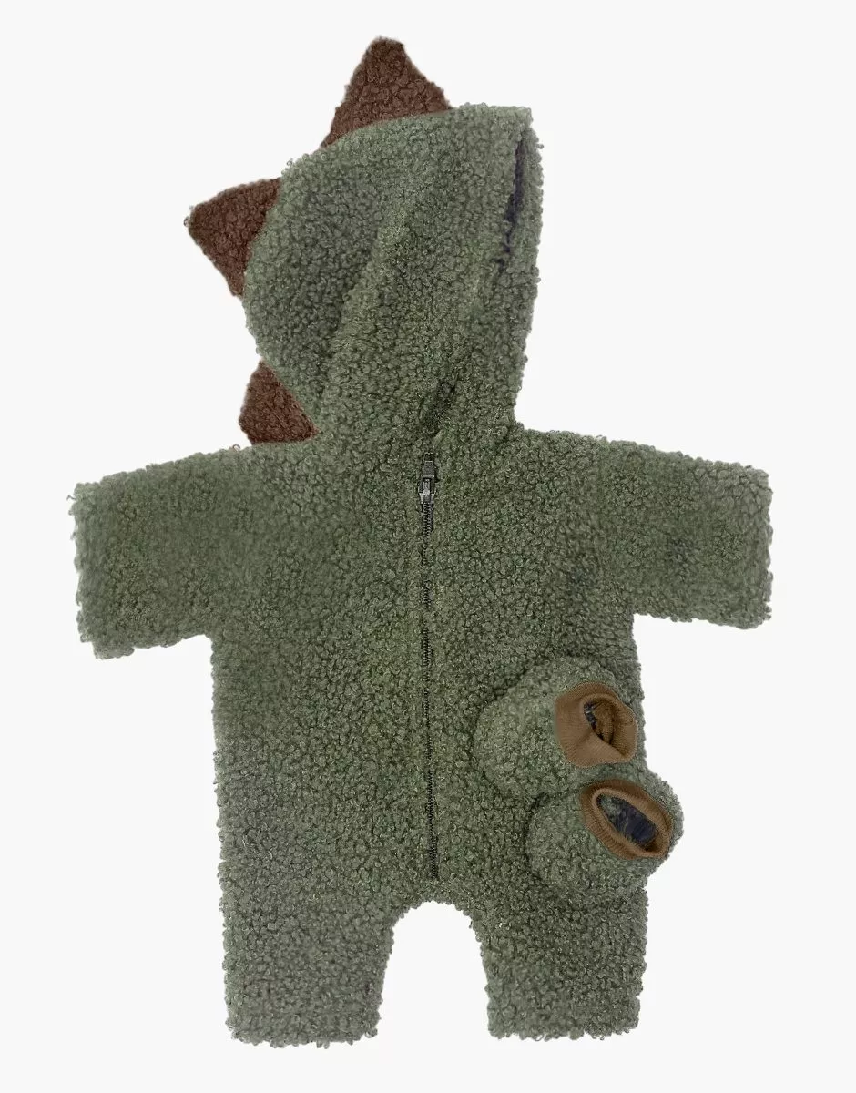 Combinaison Dino en bouclette kaki et ses chaussons pour poupées et poupons Babies 28cm Minikane.